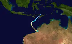 Vicky, 24 February to 4 March 1972 crossed Western Australian coast at Cockatoo Island.
