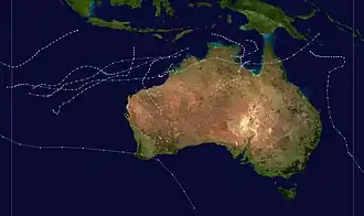 The 1972–73 Australian region cyclone season was an above-average tropical cyclone season, in terms of activity. Additionally, it is also the deadliest tropical cyclone season recorded in the Australian region, with the Flores cyclone killing an estimated 1,650 people alone, making it the single-deadliest tropical cyclone recorded in the entire Southern Hemisphere.[1]