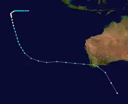 The next system, Cyclone Leah, formed near the coast of Western Australia on 27 February. Moving southwestward, Leah eventually dissipated on 11 March.