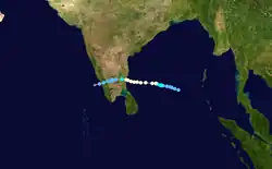 This storm killed 80 people and 150 cattle. 30,000 people were rendered homeless. Cuddalore recorded gust winds up to 150 km/h (95 mph) at the time of landfall. Total damages in Indian Rupees were estimated to be 40 crores.[4] The cyclone is visible on The Blue Marble (Top right) photo taken by Apollo 17.