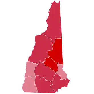 On the county map, Nixon swept all 10 of the state's counties, breaking 60% in 7 of them. As in previous elections, Carroll County and Belknap County were the most Republican counties in the state, both voting over 70% for Nixon. McGovern's strongest county was Strafford County, where he managed 41.3% of the vote to Nixon's 57.8%.