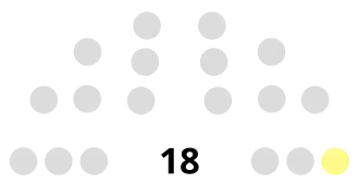 Party Seats Gains Losses Net gain/loss Seats % Votes % Votes +/−