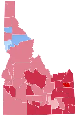 With 59.88 percent of the popular vote, Idaho would prove to be Ford's second strongest state in the 1976 election after neighboring Utah.[1] Carter became the first ever Democrat to win the White House without carrying Blaine, Boundary, or Butte Counties, as well as the first to do so without carrying Elmore, Idaho, Kootenai, or Shoshone Counties since Grover Cleveland in 1892, and the first to do so without carrying Bannock or Bonner Counties since Woodrow Wilson in 1912.