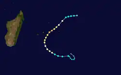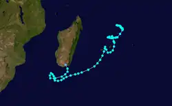 Cyclone Viola entered the basin on December 18 from the Australian region, whereupon it became Cyclone Claudette.[4] After passing southeast of St. Brandon, Claudette struck Mauritius on December 22, producing wind gusts of 221 km/h (137 mph). The storm caused 5 fatalities, 257 injuries, and US$175 million in damage on the island. About 5,000 houses were destroyed or severely damaged. Effects on neighboring Réunion were limited to 79 km/h (49 mph) wind gusts and some rainfall.[5][6][7][8]