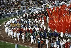 • IOC President Lord Killanin gives a speech in English. He closes the Games, with the protocol phrase "the youth of the world to assemble four years from now in Los Angeles". This is his final Olympic message as IOC President, as the position is passed during the Games to Juan Antonio Samaranch.[2]