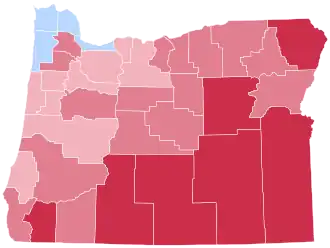 Oregon was ultimately won by former California Governor Ronald Reagan (R) by 9.66%.[9] Reagan dominated in the conservative, populist eastern interior and Rogue Valley, where he won a majority in every county, and Carter, despite carrying four counties, did not win a majority in any due to a strong vote west of the Cascades for Anderson, who reached double figures in all Willamette Valley counties except Columbia and Linn. This was the first time the Republicans had carried Coos County since Dwight D. Eisenhower in 1952.[10] As of the 2020 presidential election, this is the last election in which Lane County voted for a Republican presidential candidate.[11]