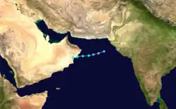 On August 9 a tropical depression developed in the northwest Arabian Sea. It tracked westward, becoming a tropical storm later that day. Aurora reached a peak of 50 mph winds before hitting eastern Oman on the 10th, where it dissipated shortly thereafter. The system was unofficially named as Aurora by the JTWC.[3]
