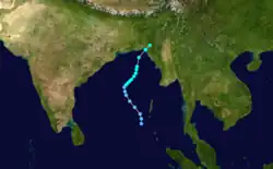 The remnants of Western Pacific Tropical Storm Kim redeveloped in the northeastern Bay of Bengal near Myanmar. It moved parallel the coastline, hit western Myanmar, and dissipated on the 20th.
