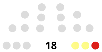Last election 15 seats, 64.0% 3 seats, 36.0% Did not contest