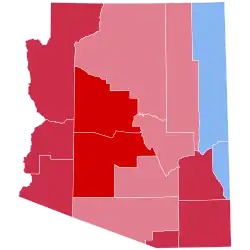 The presidential election of 1984 was a very partisan election for Arizona, with just under 99% of the electorate voting for either the Democratic or Republican parties, and only four parties appearing on the ballot.[1] Nearly every county in Arizona voted with majorities for Reagan, a particularly strong turnout even in this typically conservative-leaning state. Reagan's win in Arizona was largely the result of a lopsided 45% victory margin in Maricopa County, the state's most populated county and home to Phoenix. Mondale did best in predominantly Native American Apache County, which was typical of his gains vis-à-vis Jimmy Carter in Native American counties throughout the nation; Reagan thus became the first-ever Republican to win the White House without carrying this county.[2] Mondale also won heavily unionized copper-mining Greenlee County; albeit his performance there was the worst by a Democrat since statehood.