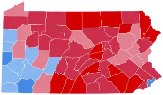 Reagan won the state by sweeping the small towns and rural areas of central Pennsylvania and performing well in the traditionally Republican suburbs of Philadelphia, but the race was kept within single digits by Mondale’s strong showing in heavily unionized and traditionally Democratic Western Pennsylvania, as well as his decisive victories in the cities of Pittsburgh and Philadelphia. As of the 2024, this is the last election in which Lackawanna County has voted Republican, the last time that Erie County voted Republican until 2016, and the last time a Republican won one-third of the vote in Philadelphia.[1]