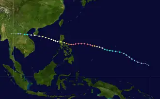 | Dot (Saling) | October 11–22 | Violent typhoon | 220 km/h (135 mph) | 895 hPa (26.43 inHg) | Caroline Islands, Mariana Islands, Philippines, South China, Vietnam | $68 million | 90 | |
