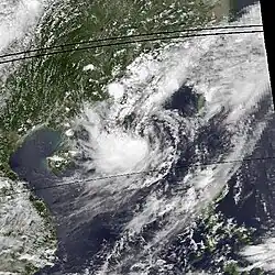 A tropical depression formed 1,050 kilometres (650 mi) east-southeast of Manila on July 4. Moving west-northwest, the system crossed the central Philippines on July 5, moving into the South China Sea on July 6. Moving more towards the north on July 7, the depression moved inland into southern China east of Hong Kong on July 8. In Hong Kong, winds gusted to 47 knots (87 km/h) at Tate's Cairn, where 114.1 millimetres (4.49 in) fell.[1] While Hong Kong considered it a tropical depression throughout its life cycle, PAGASA named the system and considered it a tropical storm.[7]