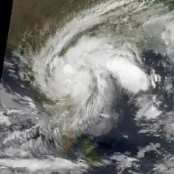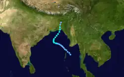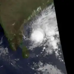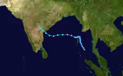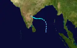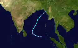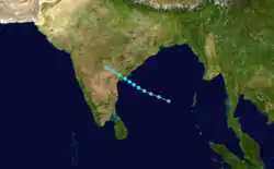 A monsoon depression became more tropical on October 14 in the Bay of Bengal. It traveled northwestward, becoming a tropical storm on the 15th and hitting southeastern India as a 50 mph storm that night. It rapidly dissipated over land.