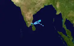 The eighth and final storm of the season formed on December 17 northeast of Sri Lanka. It moved westward, and executed an elongated loop lasting 4 days. It briefly reached tropical storm strength before vertical shear weakened it again, and the system hit eastern India on the 23rd.