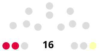 Party Seats Gains Losses Net gain/loss Seats % Votes % Votes +/−