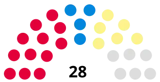 Party Seats Gains Losses Net gain/loss Seats % Votes % Votes +/−