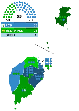 The elections, deemed transparent, free, and fair resulted in victory for the PCD-GR, with the MLSTP defeat blamed on the country's economic problems.[1] A transitional government headed by Daniel Daio was installed in February pending presidential elections to be held in March.