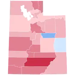 - ^ Because Perot finished ahead of Clinton in Utah as a whole, all margins given are Bush minus Perot unless stated in the total for the county in question.