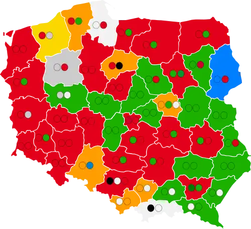 4. ^ The two candidates, Maria Hrabowska in Gdańsk and Ryszard Pacławski in Krosno were both leaders of the Polish Scouting and Guiding Association