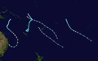 Vania November 12 – 18 Category 2 tropical cyclone 100 km/h (65 mph) 980 hPa (28.94 inHg) Solomon Islands, Vanuatu, New Caledonia, Fiji Unknown Unknown [4]