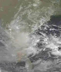 During June, a series of storms affected India in the height of the monsoon season.[4] Two storms on opposite sides of the country contributed to the northward progression of the monsoon.[1] Continued rainfall from the monsoon led to additional flooding. As of July 24, flooding from widespread rains had killed 731 people across India. The floods also wrecked 368,420 houses and ruined 394,000 ha (970,000 acres) of crop fields.[5] The monsoon became reestablished over open waters on October 9, spawning two storms in the basin that month.[6] There were two simultaneous storms on opposite sides of India in October, which would not happen again until May 2010.[7]
