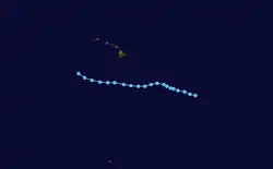 In the central Pacific, one tropical depression formed. In addition, a depression crossed the dateline from the western Pacific before dissipating in this basin. Neither of these systems reached tropical storm strength.[7] In addition, data from the Joint Typhoon Warning Center, on September 1 Tropical Depression Rick crossed the International Dateline, entering into CPHC's area of responsibility;[8] however, this storm was not included into CPHC database. The storm eventually became extratropical on September 3 over open waters.