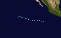 The season officially began on May 15 in Eastern Pacific and on June 1 in Central Pacific; both ended on November 30.[3] This season was below average in activity. In the eastern north Pacific, eleven tropical cyclones formed. Of these, four became hurricanes, one of which were major hurricanes because they reached Category 3 or higher on the Saffir-Simpson Hurricane Scale. The remainder were tropical storms.[4] In addition, one Atlantic hurricane, Cesar, crossed into the Pacific as a tropical storm, at which time it was renamed Douglas.[5] None of the systems in the eastern north Pacific crossed 140°W into the central Pacific. The last time that happened was in the 1979 season.[6]
