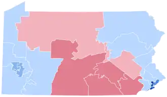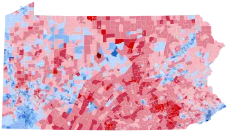 In Pennsylvania, Clinton received 49.2% of the vote, the same percentage as the national vote when rounded to the nearest tenth. Pennsylvania was also the tipping-point state in this election. As of the 2024 presidential election, this is the last election in which the following counties voted for a Democratic presidential candidate: Warren, Clinton, Westmoreland, Schuylkill, Armstrong, Columbia, Forest, and Indiana.[3] It was also the last election until 2008 in which Pennsylvania was the most Republican of the three Rust Belt swing states (including Wisconsin and Michigan).