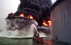 The BTF study also found that prior to the air strikes, local technicians helped minimise the potential harmful effects of air strikes by "removing oil products that could be harmful to human health if spilt or burnt, such as transformer oil containing PCBs. Production was also accelerated to use up as much as possible of the crude oil, intermediate products and additives, and the final products were shipped to other locations. The remaining oil was mixed with gasoline, so that the tanks would ignite if hit, rather than leak into the soil and groundwater".[4]