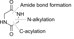 2,5-DKPs are synthesized by a variety of organisms including humans. In general, they arise by the action of a tRNA-dependent cyclodipeptide synthases, a type of enzyme responsible for creating a cyclic amide linkage between two peptides.[8] The enzymes cyclodipeptide oxidase and S-adenosyl-methionine-dependent O/N methyltransferases act in tandem to chemically modify cyclic dipeptides.[8]