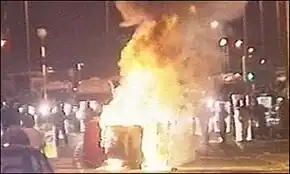 A street fire during the riots