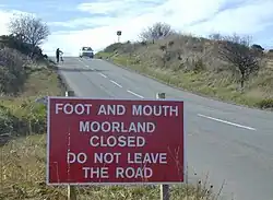 The outbreak of foot-and-mouth disease in the United Kingdom in 2001 caused a crisis in British agriculture and tourism. This epizootic saw 2,000 cases of the disease on farms across most of the British countryside. Over 6 million cows and sheep were slaughtered on farms in an eventually successful attempt to halt the disease.[1] Cumbria was the worst affected area of the country, with 893 cases.