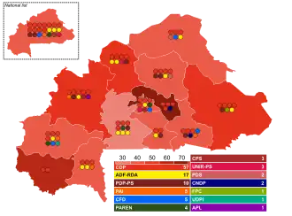 | Congress for Democracy and Progress | 862,119 | 49.52 | 11 | 46 | 57 | –44 | ||