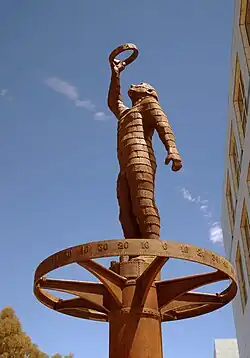 Canberra artist Tim Wetherell was commissioned by ANU[25] to produce a sculpture from the ruins of the Mount Stromlo telescopes. The finished sculpture was named "The Astronomer" and installed in the Parliamentary Triangle outside Questacon. It represents the concept of stellar parallax.