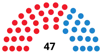 Last election 26 seats, 53.4% 21 seats, 40.4%
