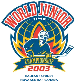 The 2003 IIHF World U20 Championship, commonly referred as the 2003 World Junior Hockey Championships (2003 WJHC), was the 27th edition of the Ice Hockey World Junior Championship.[1] The tournament was held in Halifax and Sydney, Nova Scotia, Canada, from December 26, 2002, to January 5, 2003. Russia won the gold medal for the second consecutive year with a 3–2 victory over Canada in the championship game, while Finland won the bronze medal with a 3–2 victory over the United States.