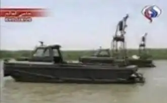 They were released unharmed three days later, on 24 June, after the British and Iranian governments agreed there had been a misunderstanding. Their equipment was not returned and a rigid inflatable boat (RIB) was put on display in a museum in Tehran. During their detention, according to former detainee Marine Scott Fallon, they endured a mock execution in which they were marched into the desert and made to stand blindfolded in front of a ditch while their captors cocked their weapons.[3][4] They also appeared blindfolded on Iranian TV, where they were forced to apologise for their "mistake".[5][6][7] The Royal Navy boats were operating close to the northern coast of the Persian Gulf in the mouth of the Shatt al-Arab waterway which divides southern Iran and Iraq. The weather was bad causing negligible visibility which may have contributed to a potential crossing of the Iranian border by the Royal Navy. After the crew were returned and events analysed the British government affirmed its belief that the personnel were actually still in Iraqi waters, however they consigned the incident to a misunderstanding and requested the return of the equipment. In 2015, an FOIA request released a redacted report.[8][9]