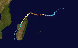 | Indlala | March 9–19 | Intense Tropical Cyclone | 175 km/h (110 mph) | 935 hPa (27.61 inHg) | Madagascar | $240 million | 150 | [6][9] |