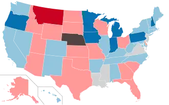 Democrats flipped ten legislative chambers. Democrats gained control of the Oregon House of Representatives, the Minnesota House of Representatives, both houses of the Iowa General Assembly, and both houses of the New Hampshire General Court for the first time since 1875, giving them complete legislative control over those states. The Iowa Senate was previously tied. Democrats also won majorities in the Wisconsin Senate, the Michigan House of Representatives, the Pennsylvania House of Representatives, and the Indiana House of Representatives, turning those legislatures into split bodies.[1] Additionally, a Democratic-led coalition was created in the Alaska Senate, which was previously a Republican majority.[2] Democrats won a majority of state legislative chambers for the first time since 1995.