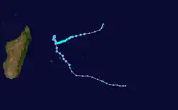 Weakening took place on December 18, and the JTWC issued its final advisory early that day.[43] Météo-France maintained the system as a tropical depression.[44][45] Météo-France issued its final advisory on December 21 as it began to dissipate just east of southeastern Madagascar.[46]
