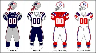 - ^ a b c d These four games were among the 16 that the NFL designated as "AFL Legacy Games" in honor of the 50th anniversary of the American Football League. The Patriots wore their throwback uniforms during those four games, as did the Bills, Broncos, and Titans (originally the Houston Oilers). The Dolphins, not one of the original AFL teams, having joined the league only in 1966, wore their standard uniforms.