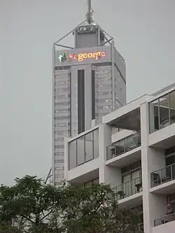 Damage to a sign on the Central Park skyscraper in Perth city caused by hail