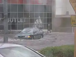 The storms brought extensive hail, strong winds and heavy rain, causing extensive damage to vehicles, property and trees, and flash flooding, as well as the first significant rainfall in Perth since 20 November 2009.[2] The hail stones are the largest ever known to have occurred in Perth and were around 3–6 centimetres (1.2–2.4 in) in diameter,[3] which caused extensive damage to property across the city,[4] including schools, hospitals, universities and power infrastructure. Wind gusts were recorded at around 120 kilometres per hour (75 mph).[2] At the peak, around 158,000 homes in Perth, Mandurah and Bunbury lost electric power.[2][5] Fixed-line telephone services to thousands of homes were interrupted until the next day, and the storms led to an estimated $200 million worth of insurance claims within three days, with $70 million within the first 24 hours.[6] It was identified as the most expensive natural disaster in Western Australia's history,[7] and was declared a natural disaster by the Premier, Colin Barnett, allowing federal and state funds to be used for disaster relief.[8][9]
