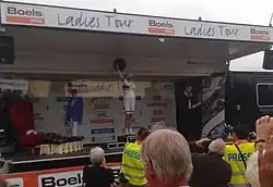 World Time Trial Champion Ellen van Dijk (Boels–Dolmans) won the time trial 12 seconds ahead of Lisa Brennauer and 24 seconds ahead of Trixi Worrack (both Specialized–lululemon).[3] Van Dijk said after the race that the time trial was very hard and she started a bit too fast. Furthermore, she said that she was very happy with the victory. She invested a lot of time in the time trial the last period and was pleased that after several second places in time trials this year she now took home the victory.[4]
