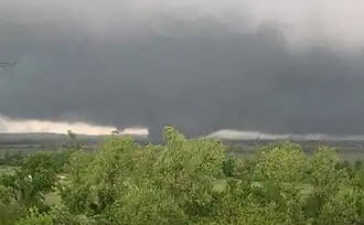 During the evening hours of April 27, 2014, a large and destructive high-end EF4 tornado moved through several communities northwest of Little Rock, Arkansas. The tornado, also known as the Mayflower–Vilonia tornado,[1] and which was part of a larger outbreak of severe weather across the central and southern United States, devastated the towns of Paron, Mayflower, Lake Conway, Vilonia, and El Paso, killing sixteen people and injuring over one hundred more. The tornado retained peak wind speeds of 190 miles per hour (310 km/h) as it moved through the town of Vilonia, where eight fatalities were recorded. The tornado was on the ground for almost an hour, and traveled a total of 41.1 miles (66.1 km) along its path, reaching a peak width of 3⁄4 mile (1.2 km).