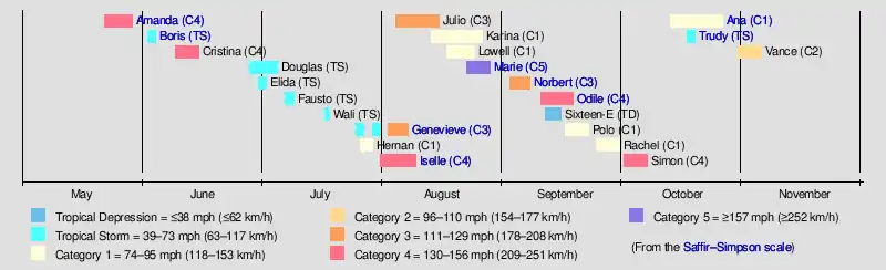 Tropical Storm Trudy (2014)Hurricane AnaHurricane OdileHurricane Norbert (2014)Hurricane Marie (2014)Hurricane IselleHurricane Genevieve (2014)Tropical Storm Boris (2014)Hurricane AmandaSaffir–Simpson scale