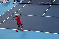 Federer opened his season at the Brisbane International in Brisbane. His first match was in the second round against Jarkko Nieminen of Finland. Though Nieminen challenged Federer in the first set with some aggressive play, Federer ultimately won the first set and went on to win the next set, and the match, handily, continuing his undefeated record against Nieminen.[1] He next played Marinko Matosevic of Australia in the quarterfinals and swept him in straight sets under an hour, allowing only two games to Matosevic.[2] Federer next played Jérémy Chardy of France, whom he had defeated in doubles earlier in the tournament, for the first time in singles in the semifinals. Federer won the first set after breaking Chardy, but Chardy matched Federer in the second set, forcing a tiebreak during which Chardy pulled away from Federer to even the match. The third set looked to be close, but Federer found a break near the end of the set and closed out the match in just under two hours.[3] Lleyton Hewitt won in the final against Federer.