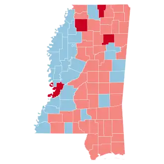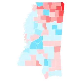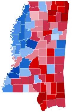 Mississippi has not voted Democratic since 1976. Since that time, Republicans have dominated the state's political elections, and so Trump was widely expected to win the state. Indeed, Trump carried it with 57.86% of the vote, while Clinton received 40.06%.[2] Trump's 17.80% margin of victory was a 6.30% increase over the 11.50% margin of victory by which Republican nominee Mitt Romney won the state over Barack Obama in 2012. This also marked the first time since 1988 that Madison County voted more Democratic than the state as a whole. Trump became the first Republican to win the White House without carrying Oktibbeha County since Richard Nixon in 1968, as well as the first to do so without carrying Copiah, Pike, or Yazoo Counties since Ronald Reagan in 1980.