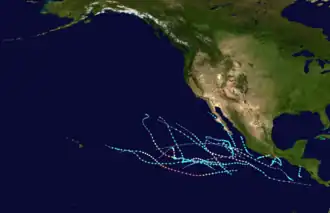 The 2017 Pacific hurricane season was an above average Pacific hurricane season in terms of named storms,[nb 1] though less active than the previous three, featuring eighteen named storms, nine hurricanes, and four major hurricanes.[nb 2] Despite the considerable amount of activity, most of the storms were weak and short-lived. The season officially started on May 15 in the eastern Pacific Ocean, and on June 1 in the central Pacific; they both ended on November 30. These dates conventionally delimit the period of each year when most tropical cyclones form in the respective regions. However, the formation of tropical cyclones is possible at any time of the year, as illustrated in 2017 by the formation of the season's first named storm, Tropical Storm Adrian, on May 9. At the time, this was the earliest formation of a tropical storm on record in the eastern Pacific basin proper (east of 140°W). The season saw near-average activity in terms of accumulated cyclone energy (ACE), in stark contrast to the extremely active seasons in 2014, 2015, and 2016; and for the first time since 2012, no tropical cyclones formed in the Central Pacific basin. However, for the third year in a row, the season featured above-average activity in July, with the ACE value being the fifth highest for the month. Damage across the basin reached $375.28 million (2017 USD),[nb 3] while 45 people were killed by the various storms.